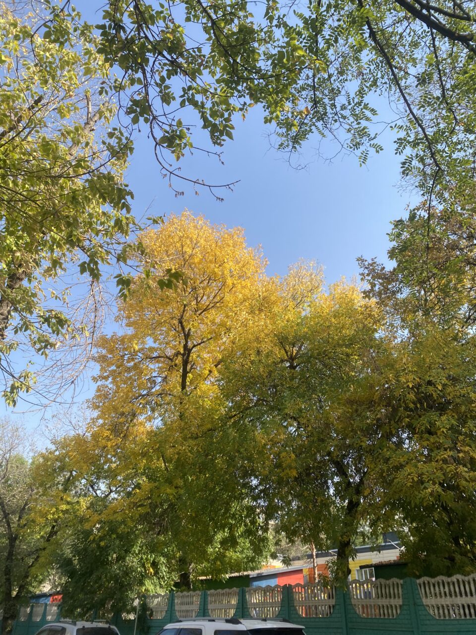 Қала көшелерінде күн сәулесі жарқырап, күздің сарғыш реңктері айқын сезіледі. Ағаштардан түсіп жатқан жапырақтар мен жылы күннің аралас келбеті Алматыға ерекше көрініс беріп тұр.