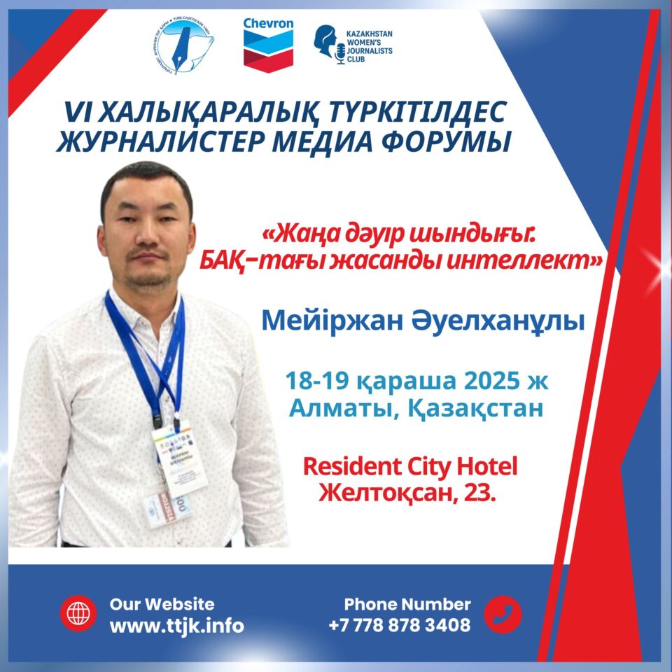 Әлемдік медиаға жасанды интеллекттің ықпалы зор. Журналистер көлеңкесі мен күнгейін қатар сезінген ЖИ-ді қалай тиімді қолданса болады? Кәсіби этиканы сақтауда қандай талаптар мен ережелерге бағыну керек. Контент қалыптастыруда ескеретін жайттар қандай? VI Халықаралық түркітілдес журналистер медиа форумында «Жаңа дәуір шындығы: БАҚ-тағы жасанды интеллект» тақырыбы талқыға салынады. «Qazaq Today» ақпаарт агенттігінің директоры, IT-маман, «Жасанды интеллект әліппесі» оқулығының авторы Мейіржан Әуелханұлы.