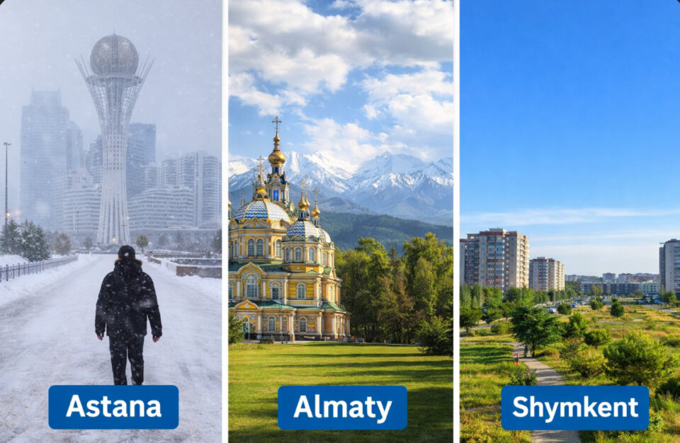Қазақстанның ең ірі қалаларында – Астана, Алматы және Шымкентте бүгін ауа райы әртүрлі құбылысымен ерекшеленеді. Синоптиктердің болжамына сәйкес, елдің басым бөлігінде бұлтты күн күтіледі, ал кей өңірлерде күн райына жауын-шашын мен боран әсер етуі мүмкін.Mail.KZ+1