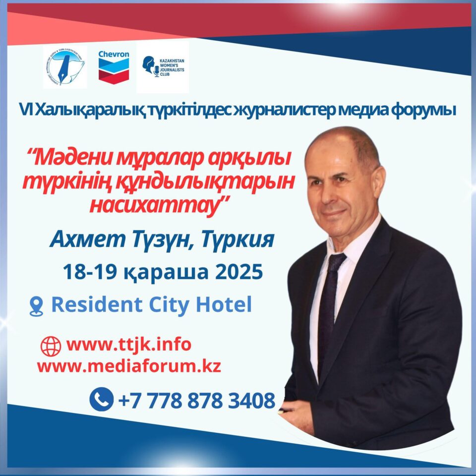 2025 жылдың 18-19 қарашасында Алматыда ұйымдастырылатын VI Халықаралық түркітілдес журналистер медиа форумында «Ұлттық мұралар арқылы түркінің құндылықтарын насихаттау» тақырыбына баяндама жасайтын Түркиядағы «Еуразия» ынтымақтастық қорының директоры Ахмет Түзүн спорт пен мәдениет арқылы түркінің ортақ құндылықтарын насихаттаудың жолдары жайлы айтады.