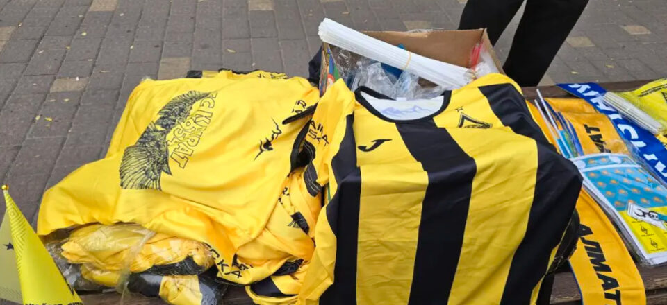 Кәсіпкерлер де жанкүйерлерді керек-жарақпен толық қамтуға тырысқан – стадион айналасында шарфтар, тулар, футболкалар, телефон қабы мен «Қайрат» таңбасы бар түрлі бұйымдар сатылуда. Кішкентай жалаушалар 500 теңгеден, үлкендері 1000 теңгеден ұсынылған.