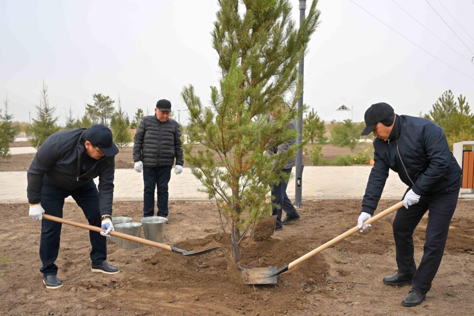 В первую очередь посадка сосен прошла в новом парке, строящемся в микрорайоне Карагайлы. В акции приняли участие аким области Берик Уали.